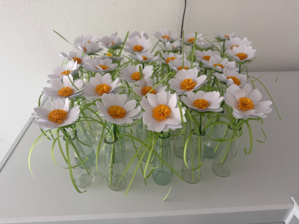 Heute wurden die Sträuße für unseren Opernball gebastelt. Das Motto lautete ja "Strauß im Duo" und bedeutete: Viele schöne Strauß-Walzer und viele schöne Sträuße als Tischdeko.