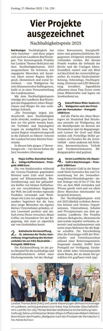 Im November erhielt die Organisatorin der LachfALTen, Frau Anja Schneider, von der Landrätin Frau Peggy Greiser die Auszeichnung mit der Thüringer Ehrenamtscard überreicht.